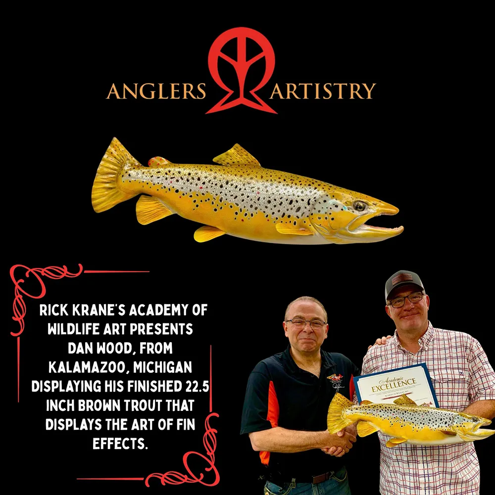 “I offer very few endorsements each year, reserved for those who have shown true devotion to advancing the art of taxidermy. Dan Wood is one of those rare artists. He has pursued excellence with the same discipline he has brought to his life and first career as a Businessman and a prolific family legacy as mechanical plumber, and he has carried that drive into his training at the Academy of Wildlife Art. Having completed, with distinction, the focused fish workshop coursework at Anglers Artistry, Dan Wood now stands among the best-trained fish taxidermists working today—an artist and businessman who refuses to accept minimum effort in his craft.”